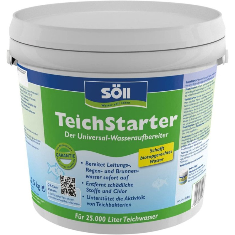 Bakteriální startér Söll TeichStarter 2,5 kg určený pro rychlé založení biologické rovnováhy v nových zahradních jezírkách nebo po zimní přestávce.