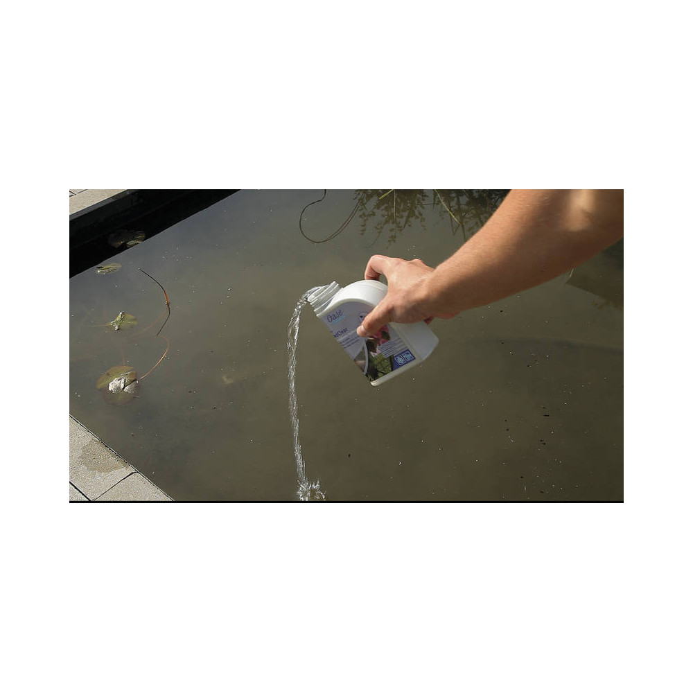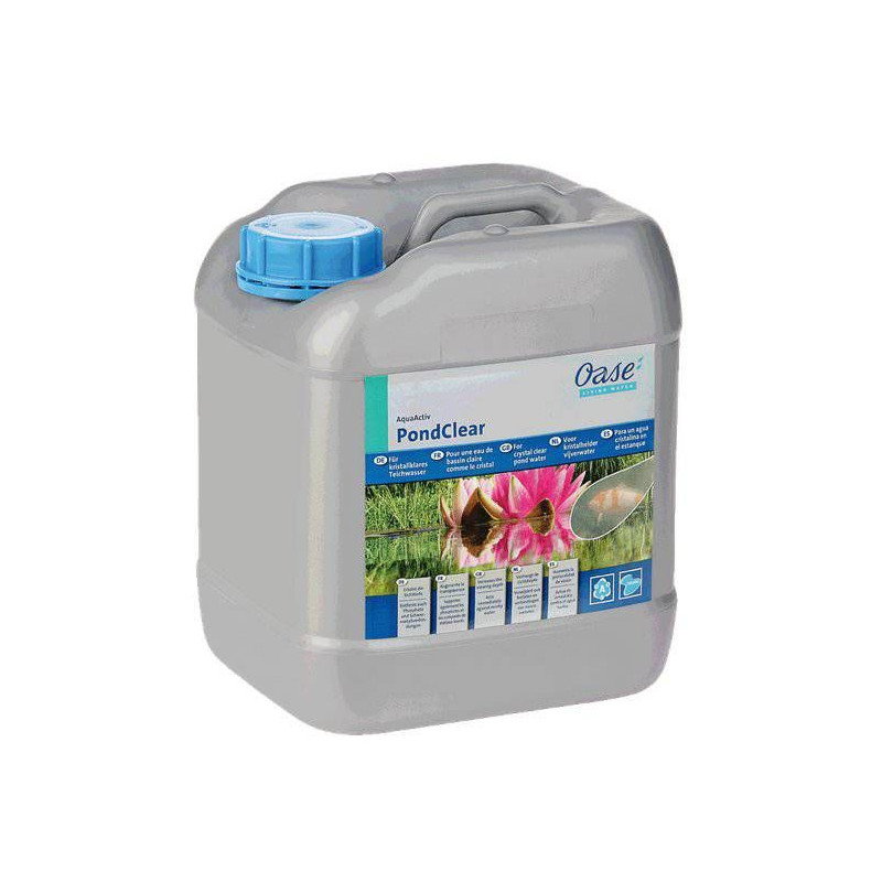 Přípravek na řasy OASE AquaActive PondClear 5 l na 100 m3 (zákal v jezírku) váže plovoucí řasy (zelenou vodu) a jiné znečišťující látky jako jsou částice hlíny, rostliny nebo organické zavěšené pevné látky. Zakalená voda v jetírku pomocí PondClear koaguluje tyto zakalené částice, takže mohou být snadno pomocí např. vysavače jezírek PondoVac 4 nebo přes filtrační systém odstraněny z jezírka. Kromě toho dochází k současnému omezení živin pro řasy ve formě fosfátů. PondClear pracuje velmi rychle a vylepšuje kvalitu vody v jezírku. Včetně CH rychlotestu pro bezpečné použití.