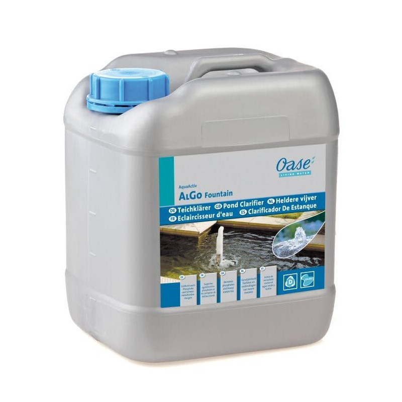 Čistící prostředek AquaActiv AlGo Fountain 5 l na zahradní fontány a speciální dekorativní bazény. Přípravek zamezuje tvorbě usazenin z vodního kamene a tvorbě řas a bakteriálnímu znečištění. Dekorativní nádrže bez živočichů a ryb budou dlouhodobě krásně čisté.