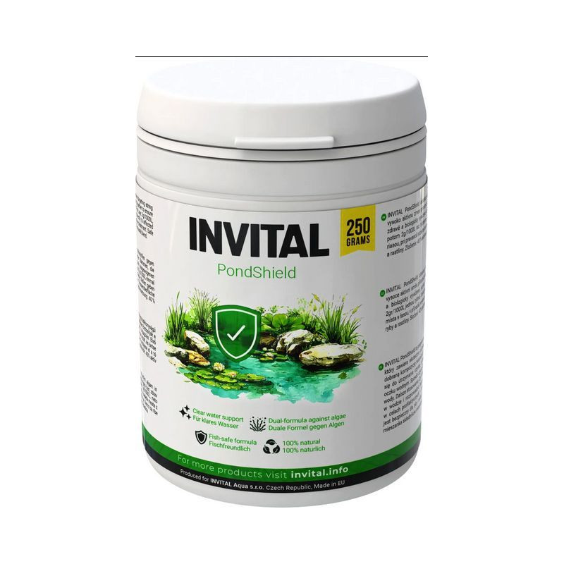 Už nechcete bojovat s neustále se vracející vláknitou řasou? Přestaňte se trápit a svěřte péči o své zahradní jezírko do rukou přípravku INVITAL PondShield. Na rozdíl od běžných přípravků, které řasy pouze likvidují, PondShield nabízí dvojí účinek: nejen, že rychle a účinně zatočí s řasami, ale zároveň dlouhodobě stabilizuje biologickou rovnováhu vody.