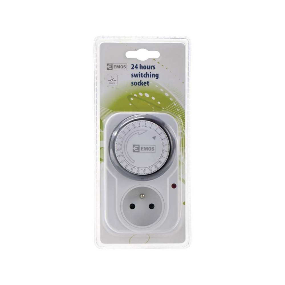 EMOS P5502 je spolehlivá mechanická spínací zásuvka určená pro automatické zapínání a vypínání elektrických spotřebičů v pravidelných časových intervalech. Díky jednoduchému analogovému ovládání a možnosti nastavit až 48 spínacích programů za 24 hodin (interval po 15 minutách) získáte dokonalou kontrolu nad chodem domácích i kancelářských zařízení.