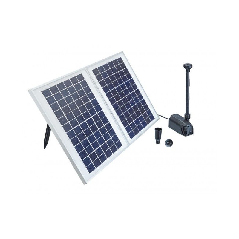 Solární panely: Obsahuje 2 kusy o výkonu 20 W každý. Mají maximální výtlak vody 2,7 m.