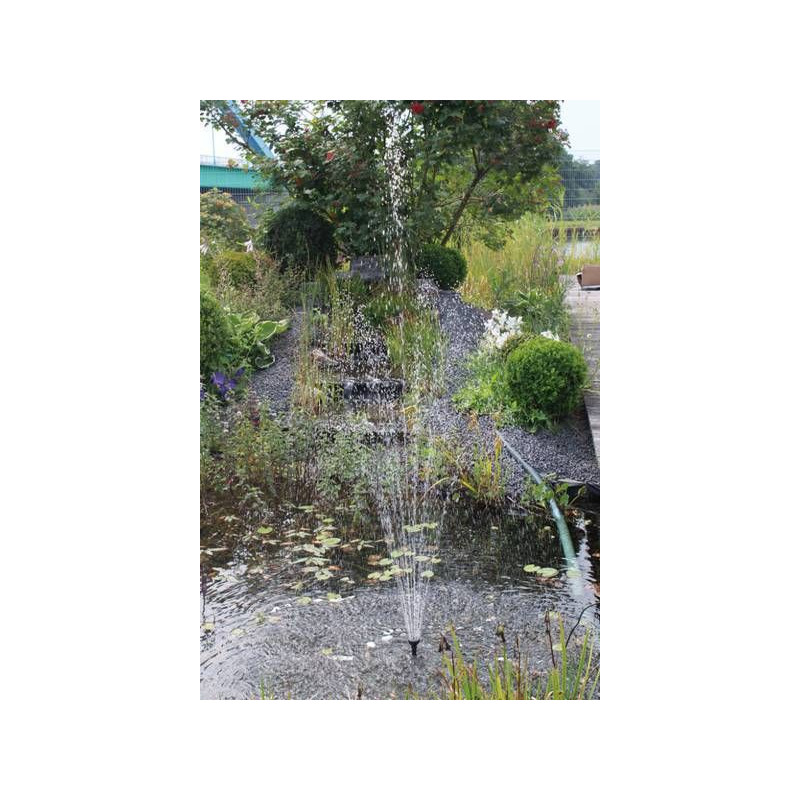 Solární fontána Pontec PondoSolar 1600 l/h, 20V, je vodotrysk (čerpadlo) na solární pohon. Obsahuje solární fontánové čerpadlo do jezírka Pontec se dvěma solárními panely a fontánovými tryskami. Jezírkové čerpadlo na solární energii patří mezi osvědčené solární vodotrysky a fontány. Fontánový set PondoSolar 1600 nevyžaduje žádné elektrické připojení. Zahradní fontána na solární pohon je vhodná pro malá jezírka. Včetně přípojek na hadice a 2 různých fontánových efektů. Plovoucí solární fontána – bez nutnosti připojení el. proudu. O solárních vodotryscích se dovíte také v naší poradně.