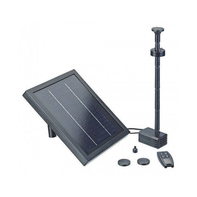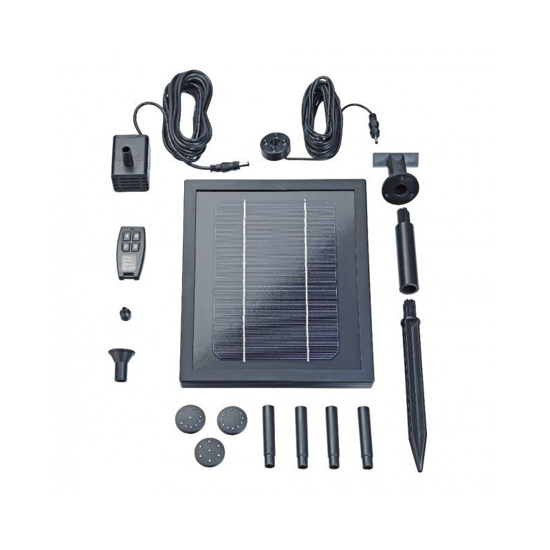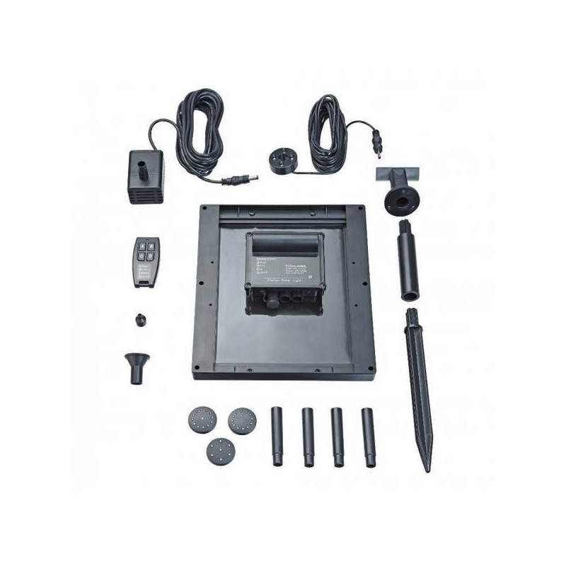 Kompletní solární set s čerpadlem (250 l/h), baterií a LED osvětlením. Díky integrovanému akumulátoru a dálkovému ovladači si vodní efekty užijete i po západu slunce. Max. výška výstřiku 60 cm.