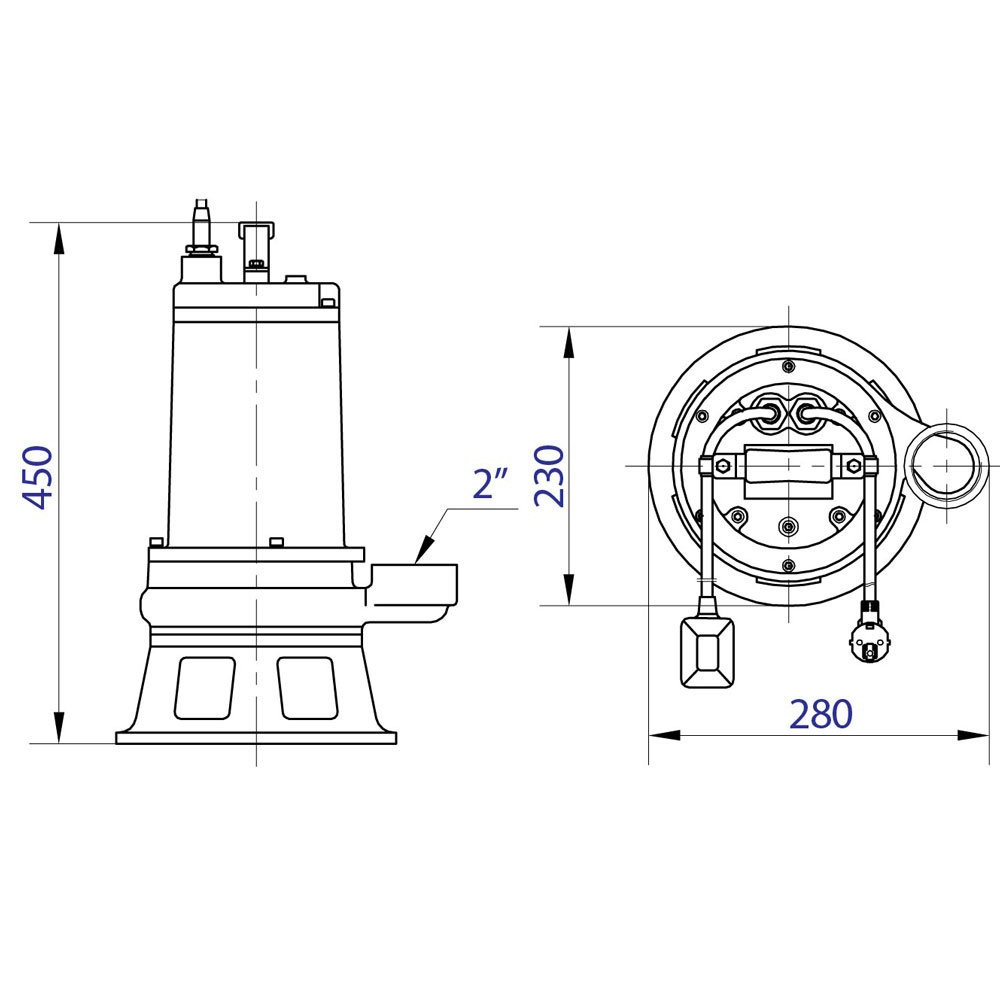 Délka kabelu: 10 m Připojení: 2" - 2 1/4" Max. teplota vody: 40 °C Hmotnost: 33 kg |