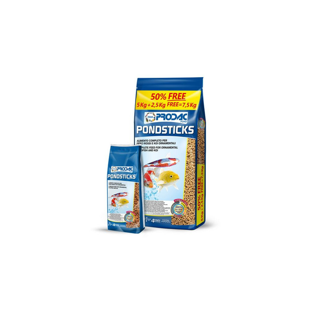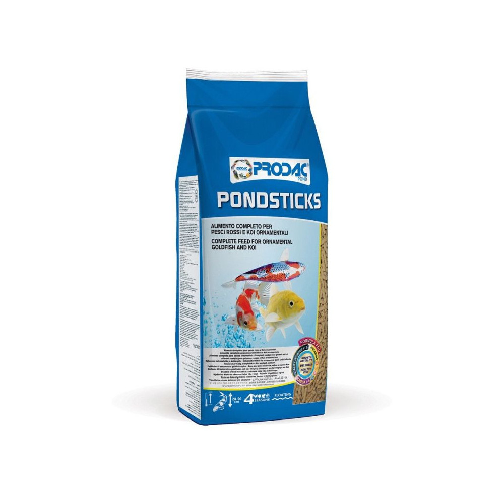 Italské krmivo pro ryby v jezírku Prodac Pondsticks 1 kg a objemu 8,3l. Plnohodnotné peletové krmení pro ryby v rybníku Prodac POND STICKS 8,3l se hodí pro studenovodní ryby jako jsou karasi, barevní kapři Koi, jeseni a mnoho dalších. Základní krmivo s obsahem kvalitních proteinů, tuků a minerálních solí pro zdraví Vašich ryb. Je obohaceno o vitamín C 100mg/kg. Neobsahuje barviva.