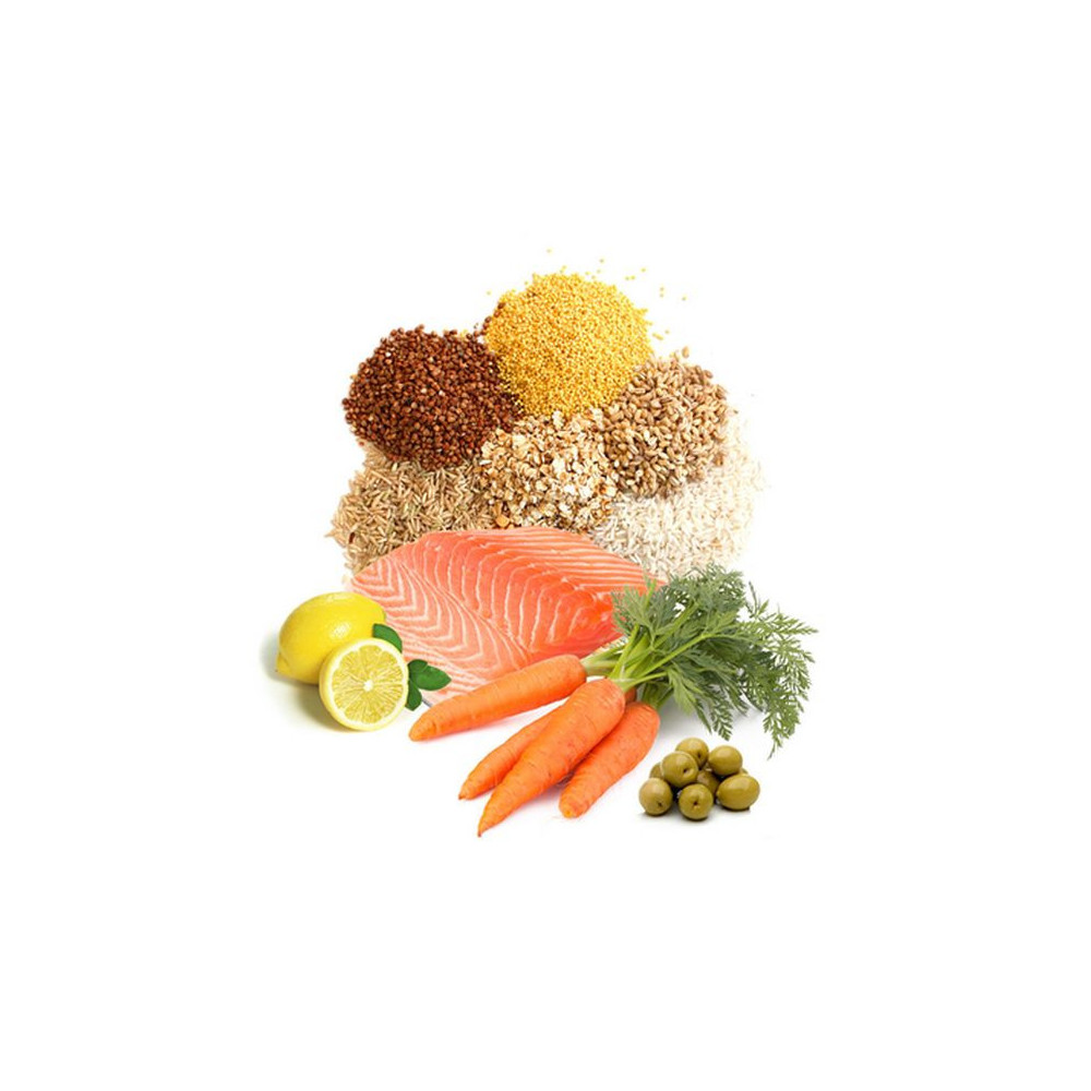 rybí moučka a moučka z krevet, rýžová a pšeničná, sojová mouka, řasy, vitamíny A,D3, E