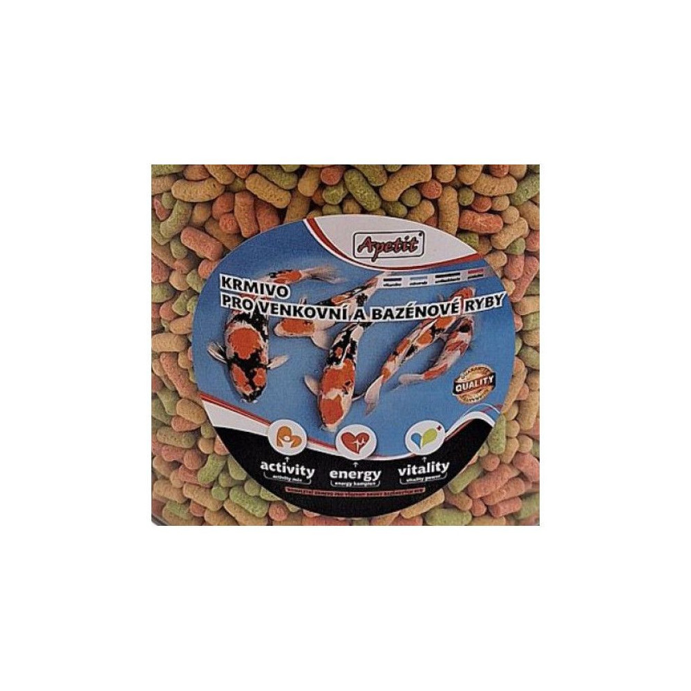 Plovoucí krmivo pro jezírkové ryby APETIT 650g ve formě peletek. Tříbarevné plovoucí pelety pro ryby v jezírku.