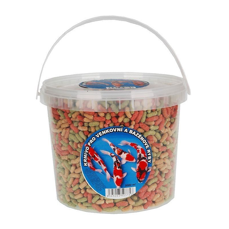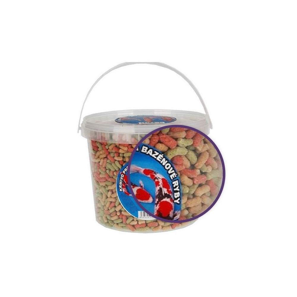 Apetit krmivo pro venkovní a bazénové ryby, kbelík cca 3,5 litru tvoří barevné pelety pro karasy, jeseny, apod.