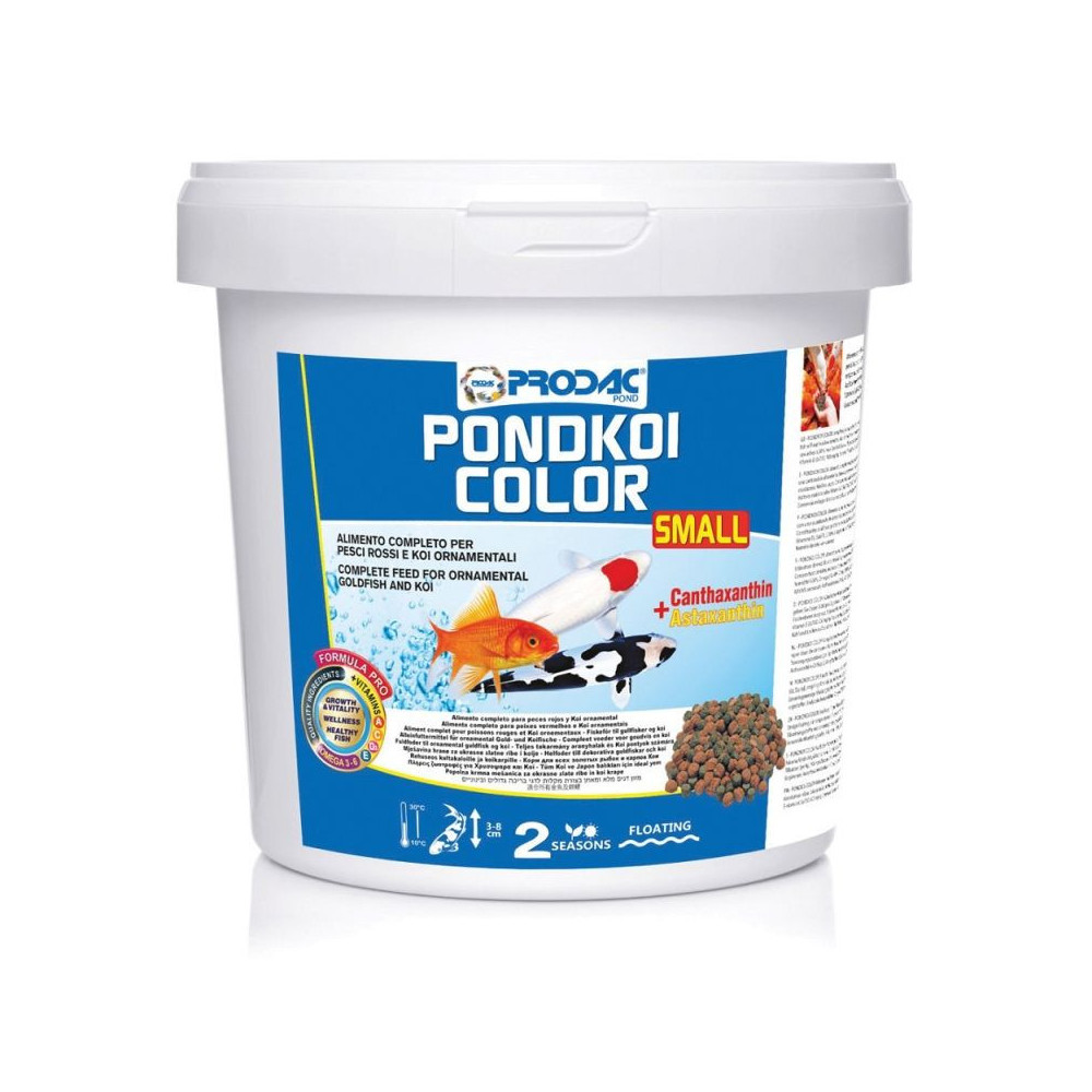 Prodac Pondkoi Color Small, kbelík 2 kg dodá vašim rybám vše potřebné pro krásné barevné šupiny.