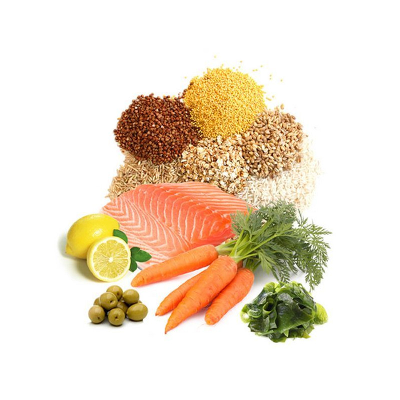obiloviny, kukuřičná mouka, pšeničná mouka, rybí moučka, moučka z mořských řas, vitamíny A, D3, E, C, barviva povolená v EU.