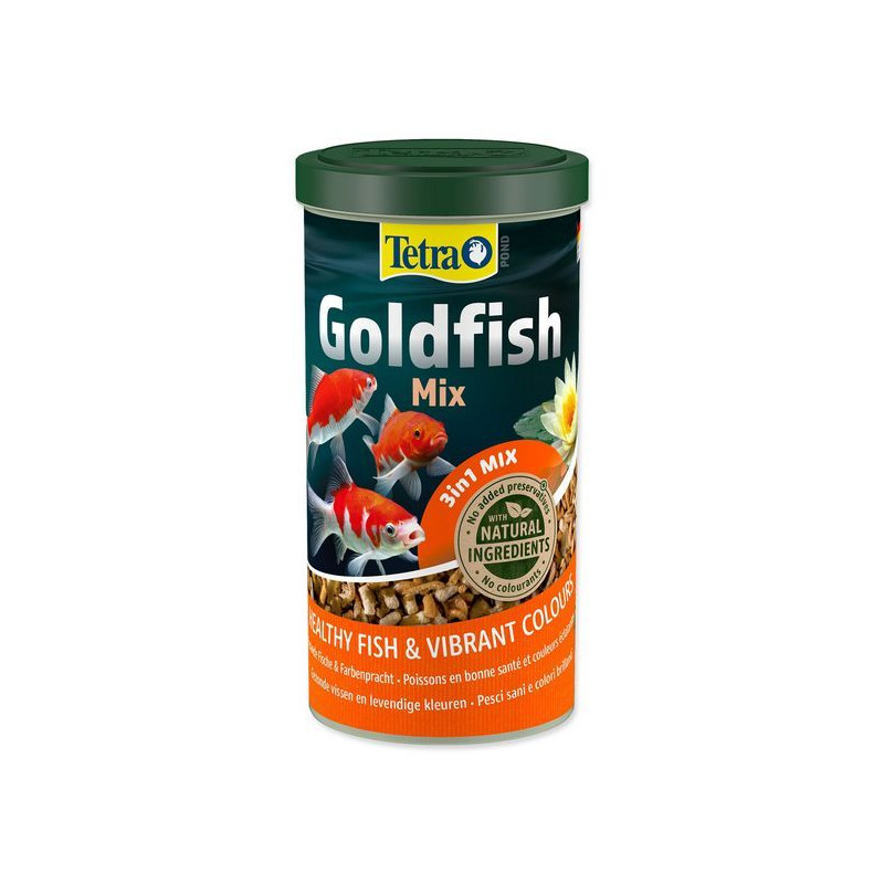 Pestré krmení Tetra GoldFish Mix 1l s gammarus pro studenovodní ryby v jezírku jako jsou karasi - závonatky - zlaté rybky, jeseni.