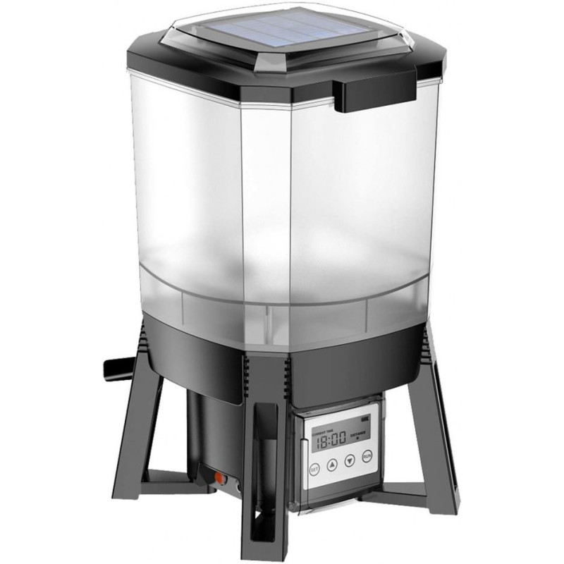 Solární pohon: Díky velké lithiové baterii s kapacitou na 3 měsíce provozu a solárnímu dobíjení ze slunečního záření je krmítko energeticky nezávislé a nemusíte se starat o jeho napájení po celou sezónu.