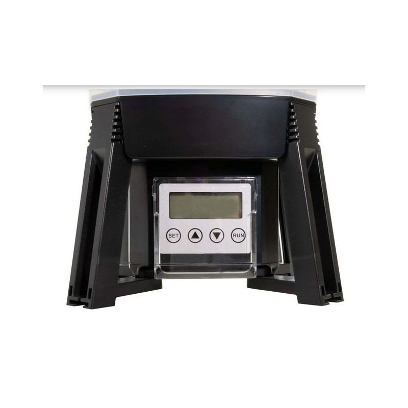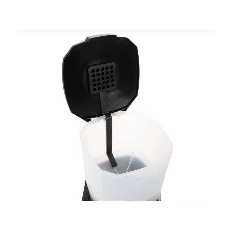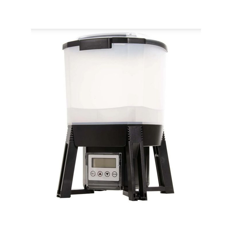 Velká kapacita zásobníku: Krmítko pojme až 6 litrů krmiva s velikostí granulí nebo pelet 3 - 10 mm (nikoliv vločky ani tyčinky), ale např. Grower, Prime apod. Navíc je nádržka poloprůhledná, což umožňuje snadné sledování množství docházejícího krmiva.