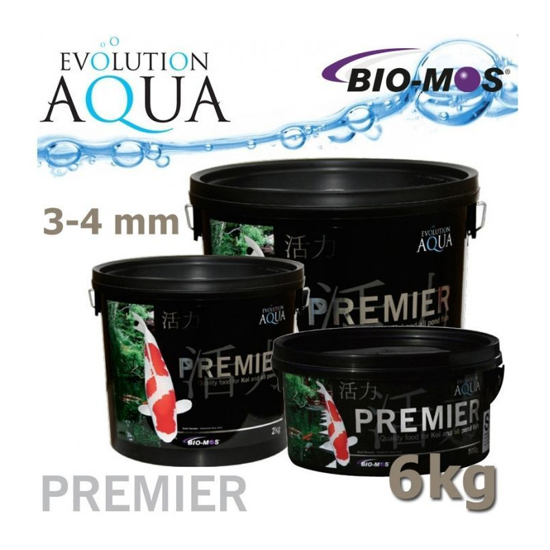 Extra kvalitní krmivo Evolution Aqua Premier 3-4 mm 6kg pro veškeré druhy okrasných ryb a speciálně pak pro KOI kapry. Velikost granulí 3-4 mm je pro malé a menší rybky včetně KOI. Ideální pro krmení ryb při teplotě vody nad 8°C