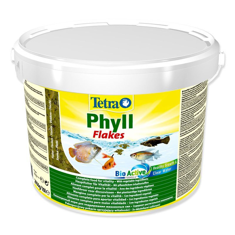 Vločkové rybí krmivo Tetra Phyll 10l je ideální jako krmení pro živorodky, vejcorodky a ostatní {tetraplyll} býložravé druhy akvarijních rybek. Kompletní krmivo pro živorodky Tetra Tetraphyll Flakes. Obsahuje veškeré živiny významné pro život, vitamíny a stopové prvky. Obsahuje stabilní množství vitamínu C.