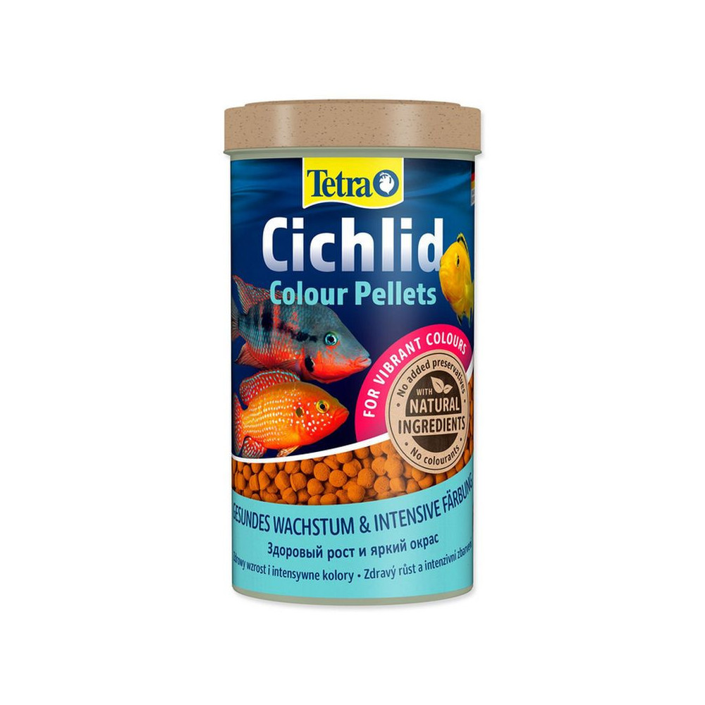Dopřejte svým cichlidám stravu, která rozzáří jejich přirozenou krásu. Tetra Cichlid Colour je kompletní prémiové krmivo vyvinuté speciálně pro všežravé a masožravé cichlidy. Díky unikátní směsi přírodních barviv uvidíte rozdíl již po krátké době – krmivo výrazně zjasňuje zejména červené, oranžové a žluté pigmenty.