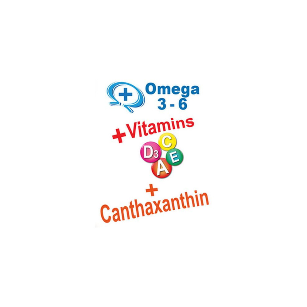 sója, ryby a rybí produkty, obiloviny, korýši, zelenina, řasy, obohaceno o vit. A, C, D3, E a Omega 3 a 6 mastné kyseliny