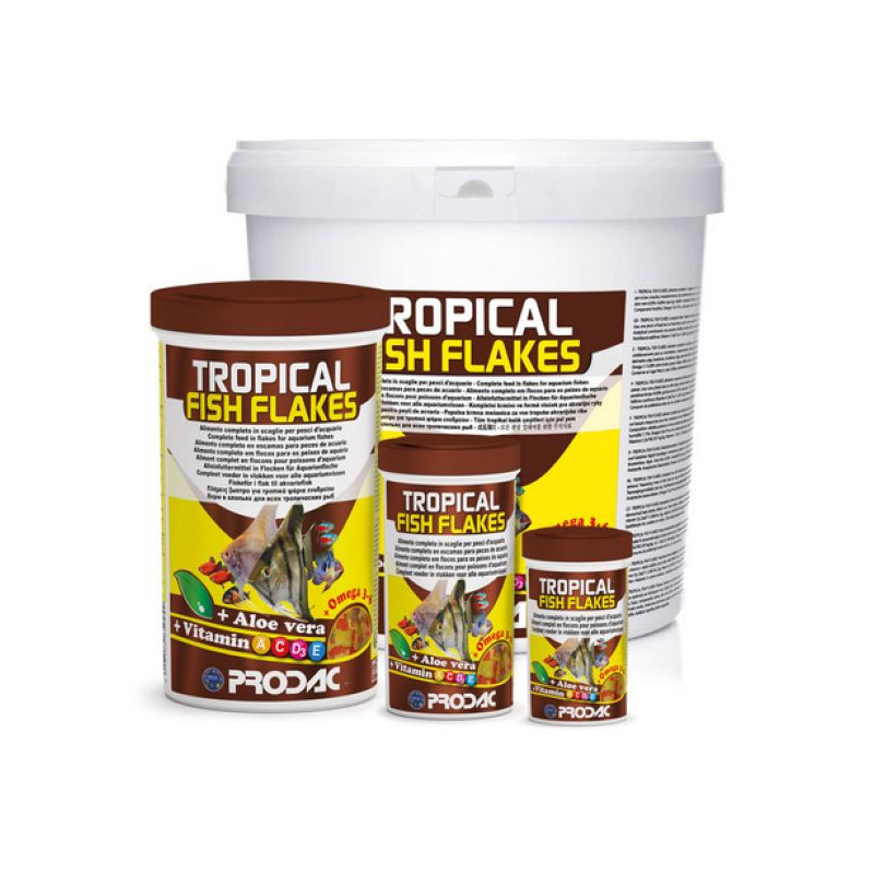 Vločkové krmivo Prodac Tropical Fish Flakes 1200 ml pro všechny druhy tropických akvarijních ryb. Směs různých vysoce kvalitních ingrediencí pro zdravé krmení vašich tropických ryb.