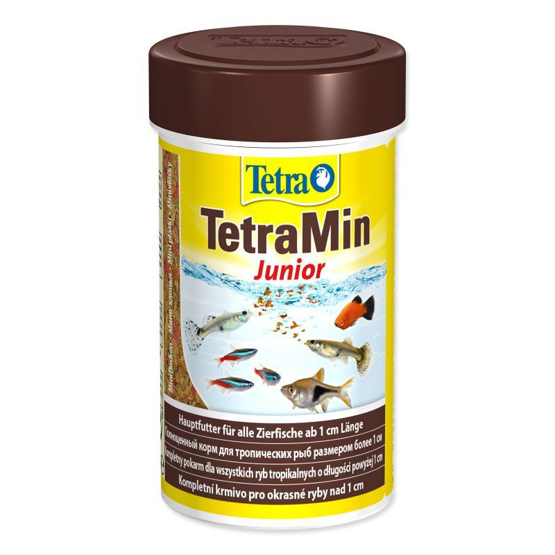 TetraMin junior 100ml je speciální druh vločkového krmiva pro potěr v délce přes 1 cm. Krmení TetraMin junior má tvarminivloček. Vločky pro každodenní krmení mladých akvarijních rybiček. Kromě BioActive formule pro zdravý imunitní systém a růst ryb, jsou součástí krmení prebiotika pro dobré trávení. Plovoucí a nespadávající vločky umožňují správné stravování. TetraNin junior doporučujeme také jako krmivo pro menší druhy rybek, např. tetry neonové.