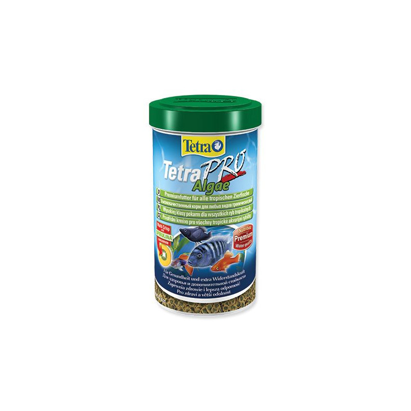 TETRA TetraPro Algae 500 ml jsou plovoucí lupínky krmiva pro tropické rybky. TetraPro Algae obsahuje koncentrovaný výtažek z vodních řas - spirulinu.