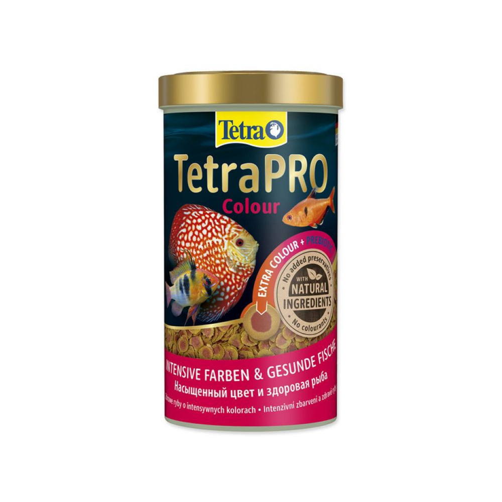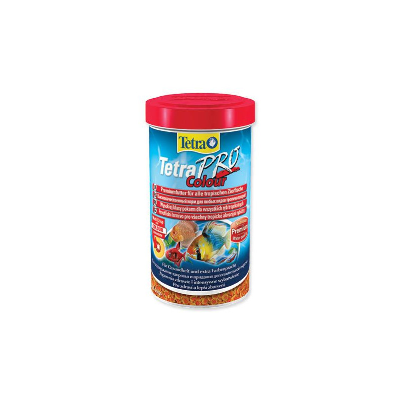 TetraPro Colour 500 ml • krmivo pro okrasné ryby • krmivo s karotenem • Tetra rybí krmení • prémiové vločky pro ryby • akvarijní krmivo TetraPro • krmení pro syté barvy ryb