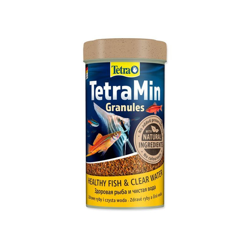 Krmivo Tetra Min Granules 250ml, krmivo pro akvarijní ryby, krmivo pro tetry, krmivo pro skaláry, akvarijní krmivo, krrmení pro tetry, granule pro ryby