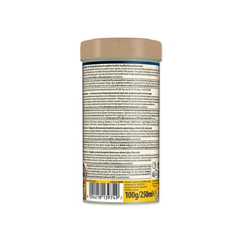 Granule pro ryby v akváriu TetraMin Granules 250ml je biologicky vyvážené granulované krmivo pro všechny druhy akvarijních ryb. Tetra Min Granules diky BioActive formuli posiluje zdraví ryb a jejich odolnost. Přidaná prebiotika zlepšují tělesné funkce jako je trávení. TetraMin Granules plavou po hladině a pak s pomalu potápí ke dnu. Vyhovují rybám, které berou potravu při jejím klesáním.