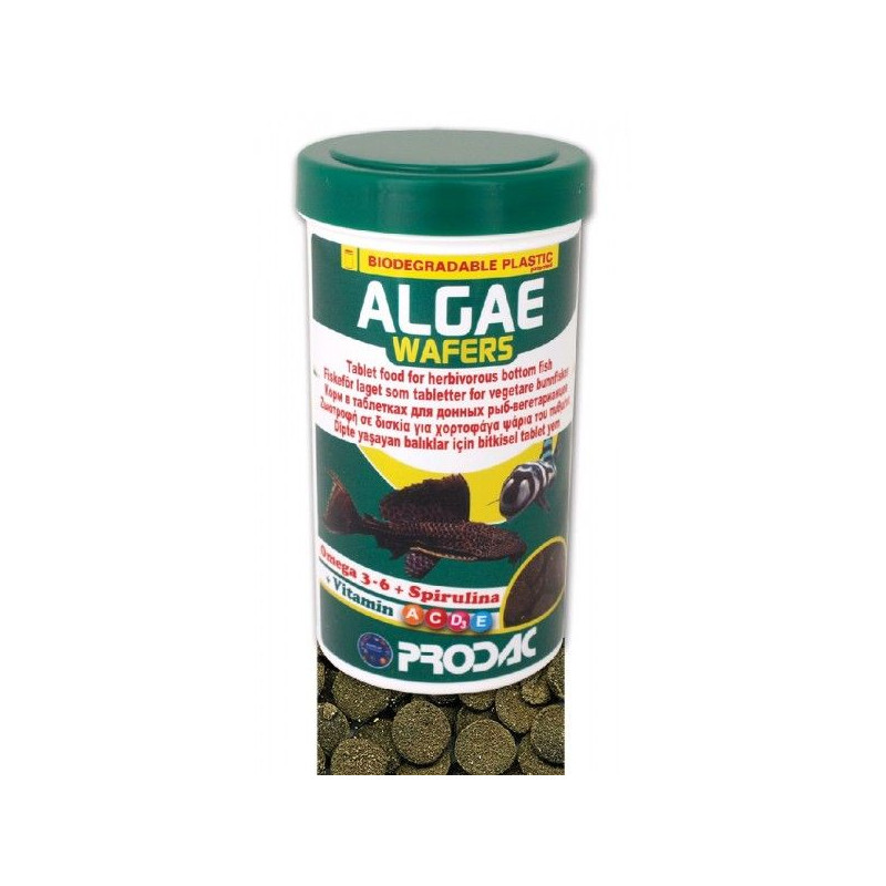 Kvalitní krmivo pro ancistrusy Prodac Algae Wafers 250 ml jsou rostlinné tablety obsahující řasu a vitamíny. Výhodou je, že nekalí vodu a podporují zdraví vašich ryb. Krmení pro býložravé ryby, které hledají jídlo u dna.