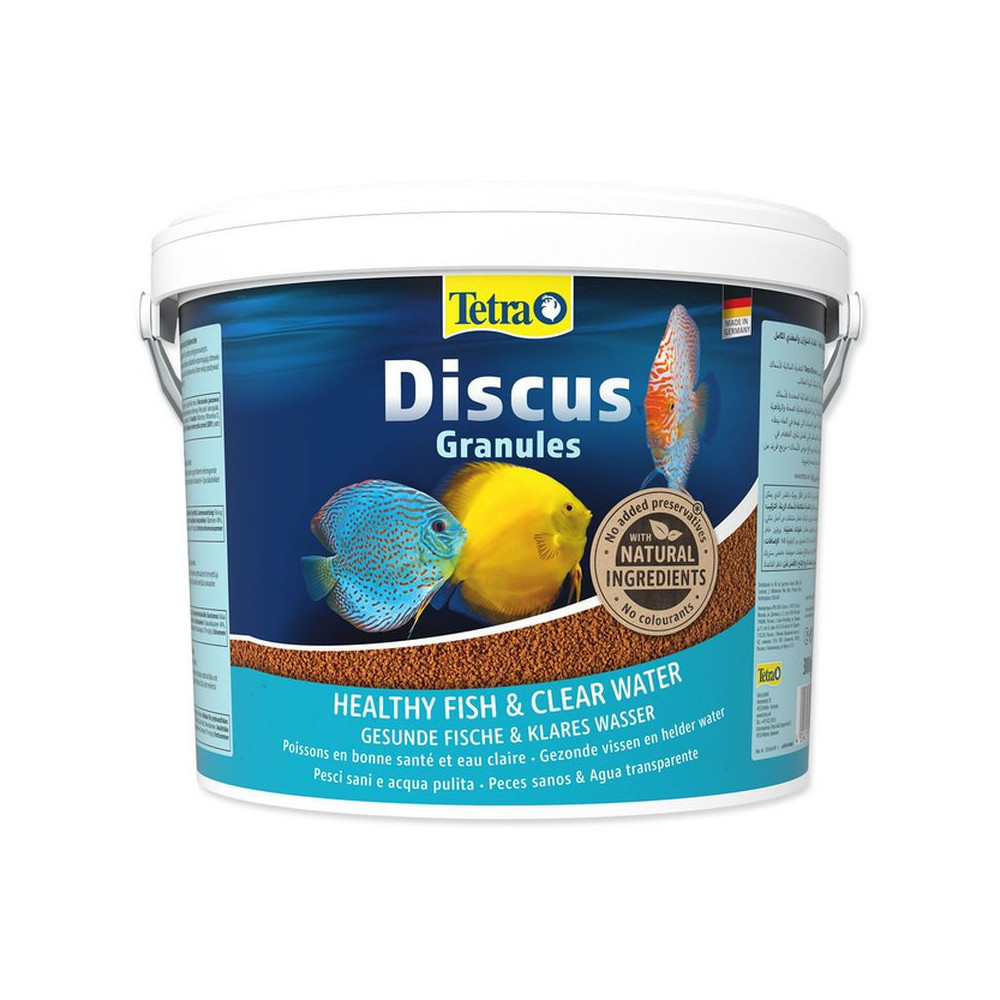 Špičkové granulované krmivo pro náročné terčovce (Symphysodon). Tetra Discus 10 l zajišťuje díky vysokému podílu proteinů a vitamínů zdravý vývoj a zářivé barvy. Granule pomalu klesají, nekalí vodu a jsou ideální pro každodenní krmení v profesionálních chovech.