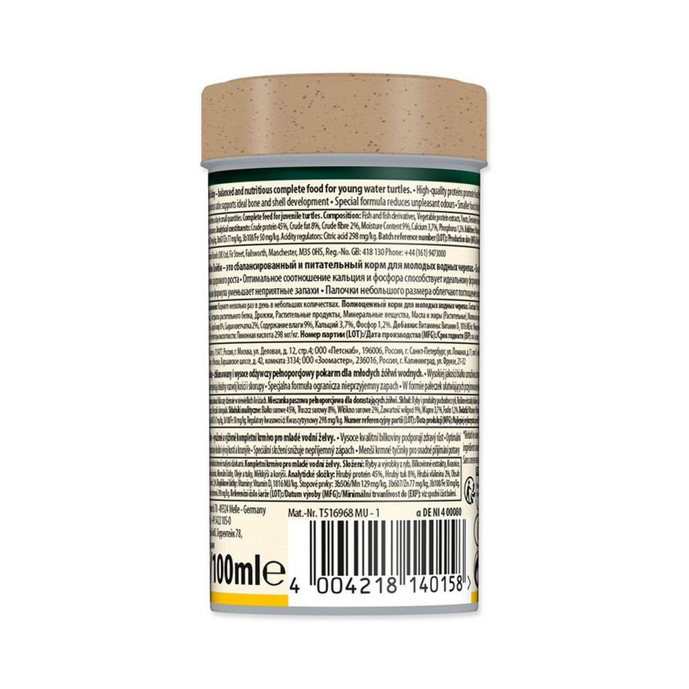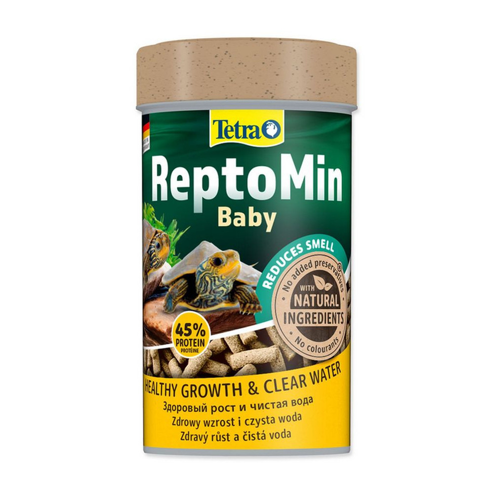 Tetra Repto Min Mini-Baby 100 ml je kompletní, výživné a snadno stravitelné krmivo ve formě plovoucích minityčinek, speciálně vyvinuté pro mladé vodní želvy. Díky své velikosti a složení jsou tyčinky ideální pro malé čelisti želv a podporují zdravý růst již od raného věku.