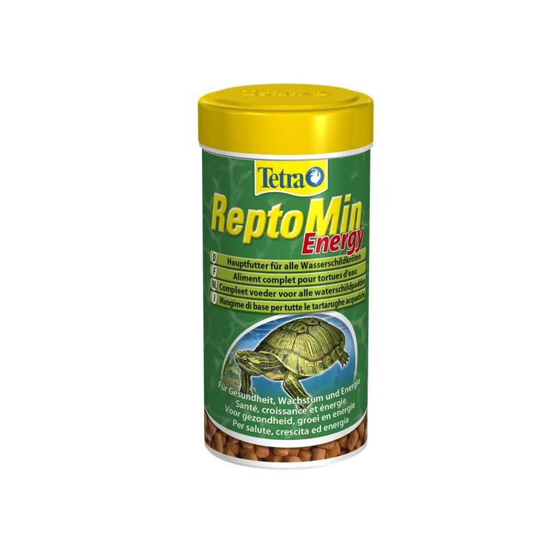 Energetické krmivo pro vodní želvy Tetra ReptoMin Energy s obsahem více než 55% krilu a krevetek, a proto je bohaté na nenasycené mastné kyseliny ( omega-3).