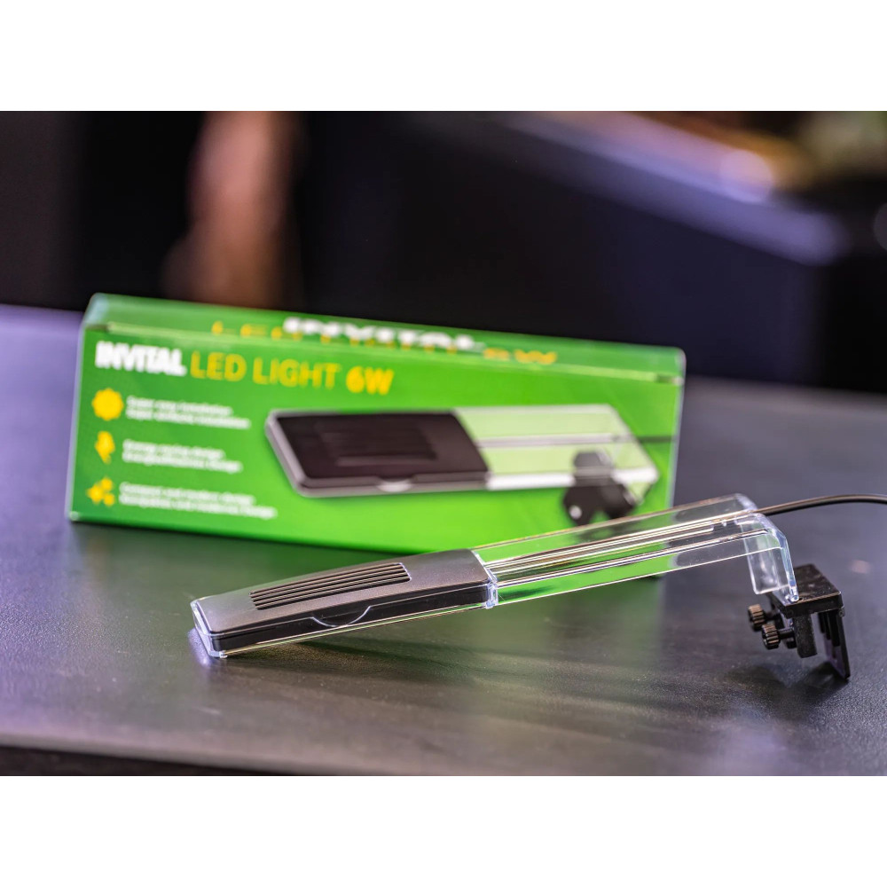 INVITAL LED lampička 6W černá je stylové a kompaktní LED osvětlení s transparentním tělem a černou hlavou se skvěle hodí pro menší akvária