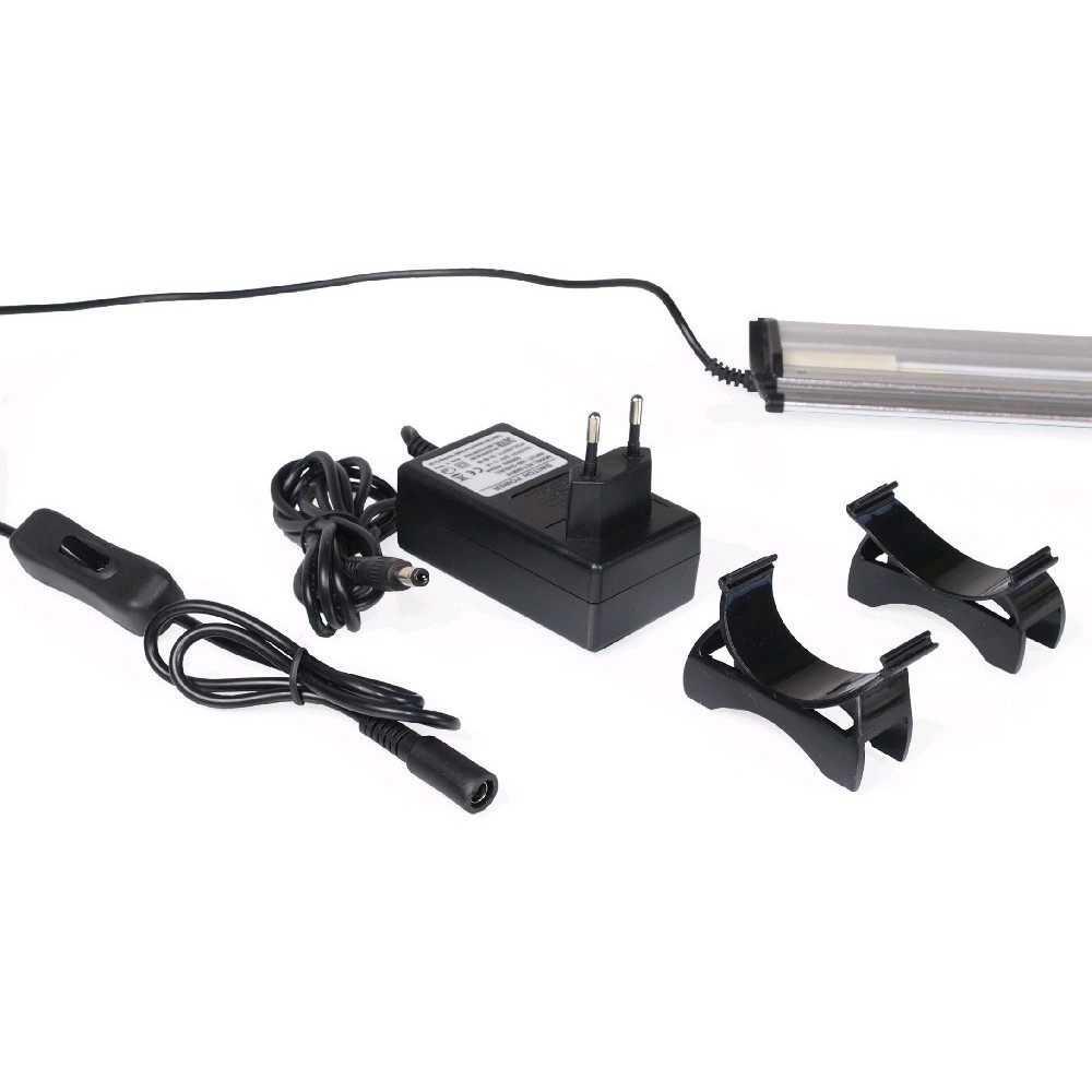 Akvarijní LED osvětlení LFL-CL-600, 18W, 60cm (White) je světelná rampa na akvárium a paludárium v bílém spektru záření - cob technologie svetla- bezpečné akvarijní osvětlení díky napájení ze sítě přes transformátor 24V. Vysoká svítivost podporuje růst rostlin. Technologie COB zajišťuje perfektní rozptyl světla pod úhlem 120°. Nulový úbytek světelného záření po roce užívání. Velice úsporné osvětlení ve srovnání s akvarijními zářivkami, které je třeba pro optimální spektrum vyměňovat po roce svícení. Posuvné nožky Vám umožní snadnou instalaci na akvarijní nádrž nebo paludárium. Pokud si dokoupíte dálkové ovládání intenzity akvarijního LED osvětlení LFL-CL s jedno i vícebarevným spektrem, můžete ovládat osvětlení např. ze sedací soupravy.