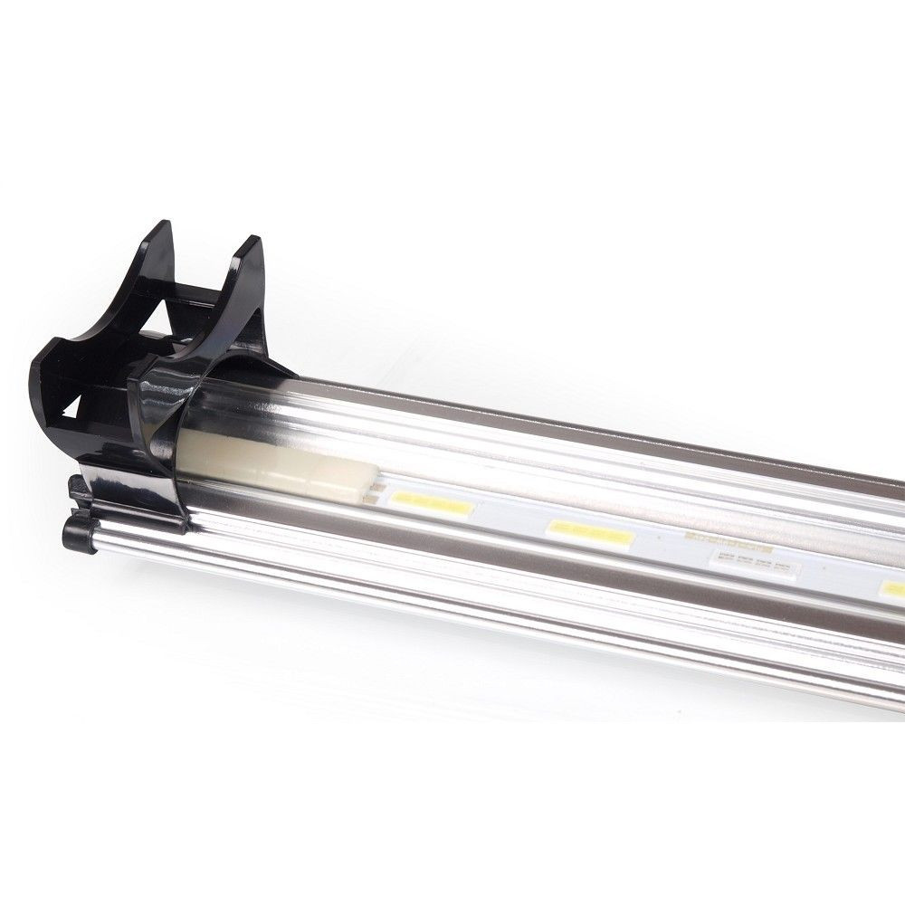 LED osvětlení akvária LFL-CL 500 12W, délka 50cm v modrobílém spektru světa. LED akvarijní osvětlení řady LFL-CL podporuje vitalitu a pěkný růst rostlin, neboť kombinace modré a bílé složky záření jim velmi vyhovuje. Toto osvětlení nalezne uplatnění také u kombinovaných nádrží, takzv. paludárií. Bezpečnost akvarijní světelné rampy je zajištěna napájením přes 24V trafo. COB technologie zajišťuje vyšší svítivost, větší rozptyl světla a delší životnost osvětlení do akvária. Teplota světla v bílém spektru 90000 Kelvinů, v modrém 100000 Kelvinů. V případě potřeby je možné dokoupit dálkový ovladač míry světla a můžete nastavit přesně takovou intenzitu osvětlení, jakou potřebujete. Světlo je dostatečně silné, takže jej můžete pomocí tohoto stmívače libovolně ztlumit na požadovanou úroveň, pokud upřednosťujete slabší světlo nebo to vyžadují podmínky v akváriu. V balení naleznete osvětlovací rampu, transformátor a posuvné uchycení.