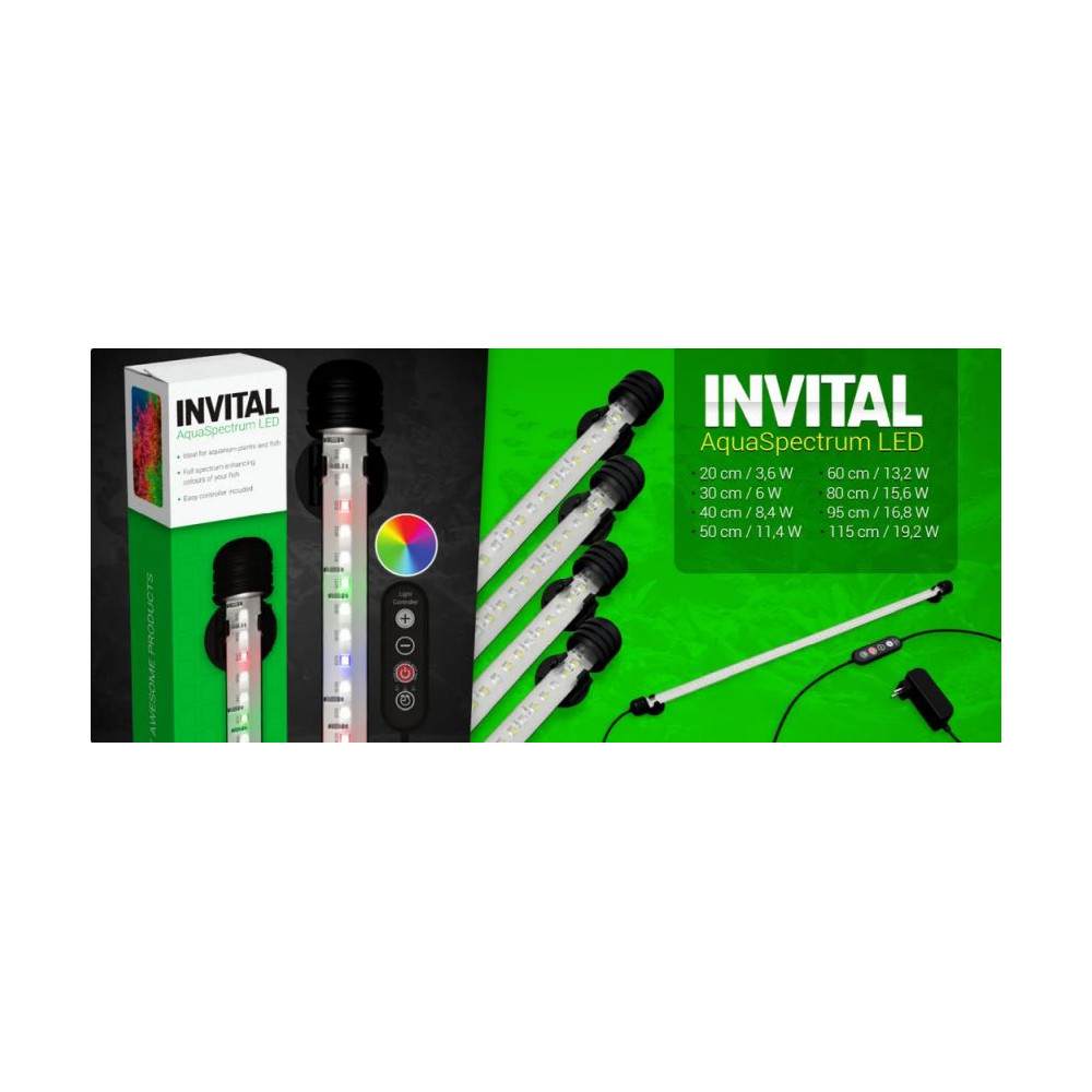 INVITAL AquaSpectrum LED 15,6W 74cm je LED WRGB trubice, která se hodí pro osvětlení akvárií nebo terárií. Světlo do akvária a terária je navrženo tak, aby poskytovalo kompaktní a odolné osvětlení ve spektru WRGB (bílá, červená, zelená, modrá) a je vhodné pro různé typy nádrží.