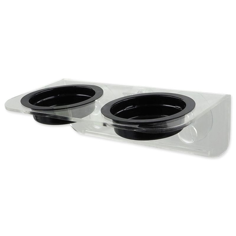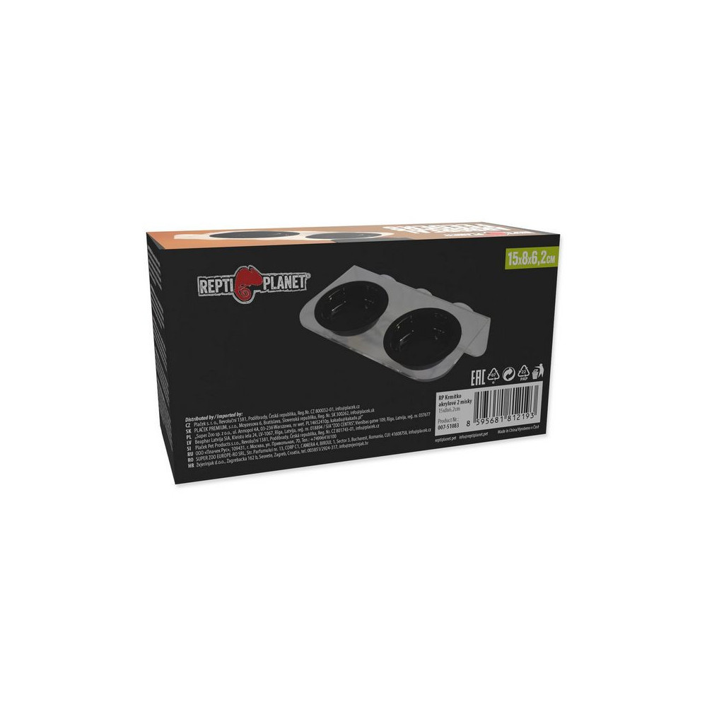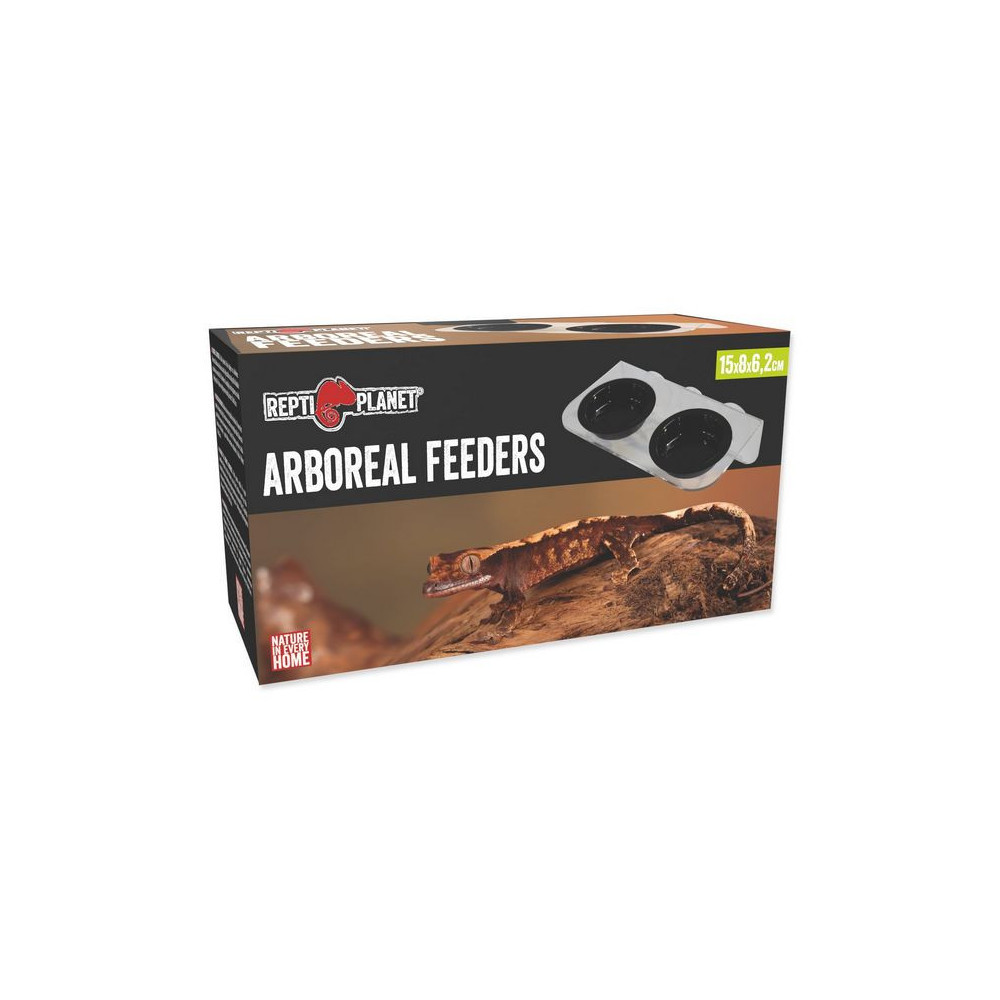 Krmítko REPTI PLANET akrylové 2 misky 15 x 8 x 6,2cm pro podávání potravy a vody stromovým plazům. Krmítko Repti Planet můžete použít i pro jiná zvířata, jako jsou např. obojživelníci. Připevňuje se na sklo terária.