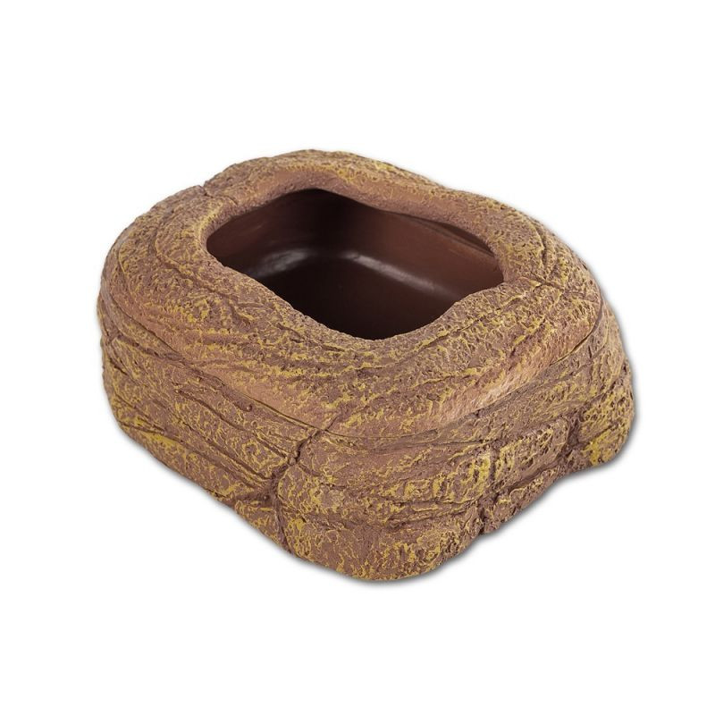 Stylizovaný design přírodní skály se dokonale mísí s teráriovým dekorem, zatímco zůstává praktický v každodenním používání. Díky dobře promyšlenému designu miska umožňuje čisté a účinné krmení bez nepořádku.