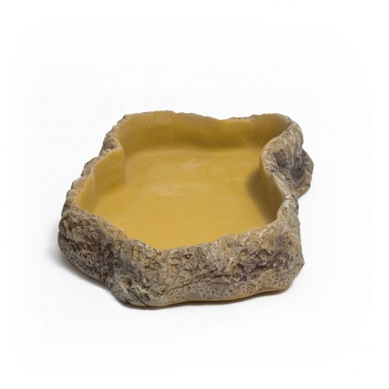 Designová a vysoce odolná miska z bezpečného polyresinu v přírodním kamenném vzhledu. Díky své stabilitě a hladkému povrchu je ideální pro hygienické krmení plazů a obojživelníků. Dokonale splyne s dekorací terária a snadno se udržuje.