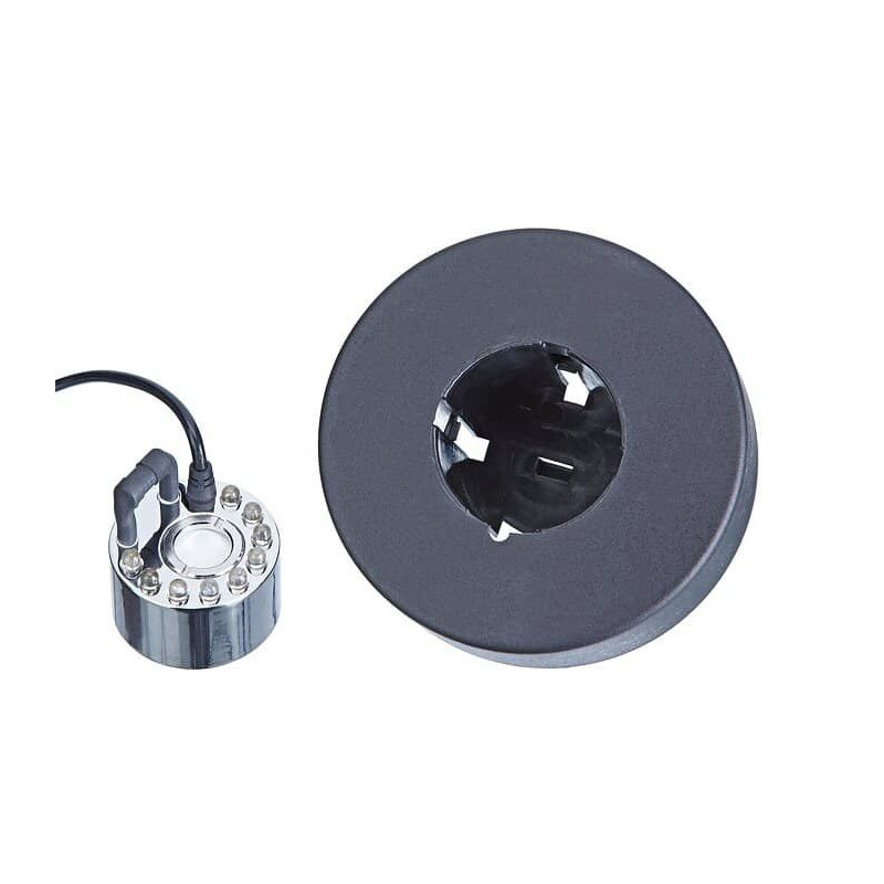 Pontec mlhovač do jezírka PondoFog RGB s barevným osvětlením využívá ultrazvukový signál k okamžitému účinnému rozstřikování vody a vytváří skutečnou mlhu.
