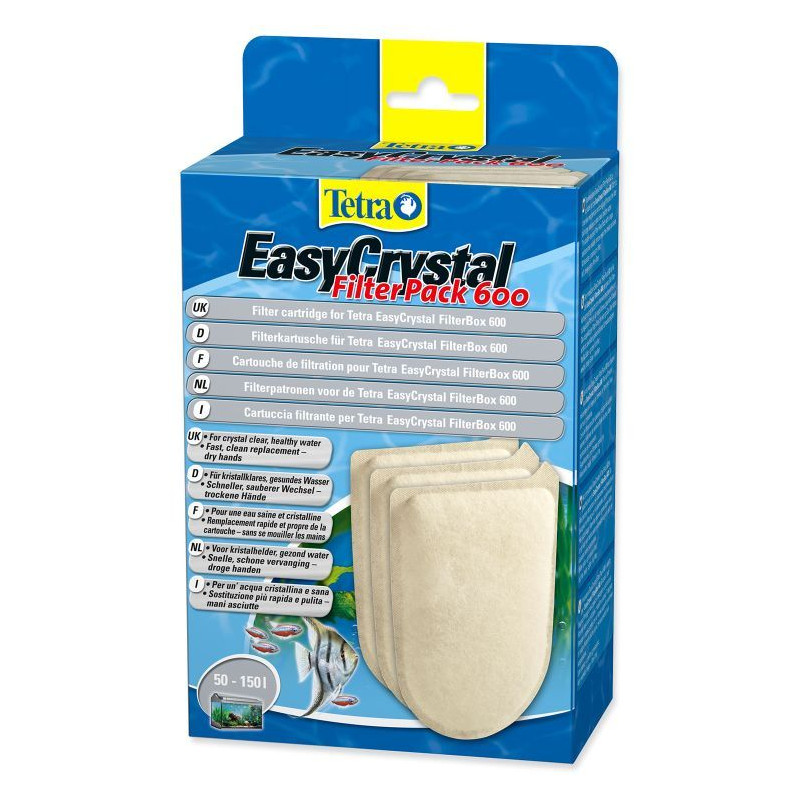 FilterPack 600 je vyměnitelná kartuš pro akvarijní filtry Tetra EasyCrystal Box 600. Filtrační náplň s časovým proužkem, který ukazuje, že nastal čas výměny tohoto média.