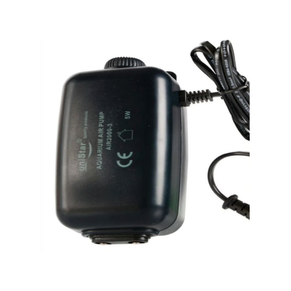 Akvarijní vzduchovací kompresor Air 2000-3, 200 l/h , dva výstupy, pro vzduchování do akvária do 270 litrů.