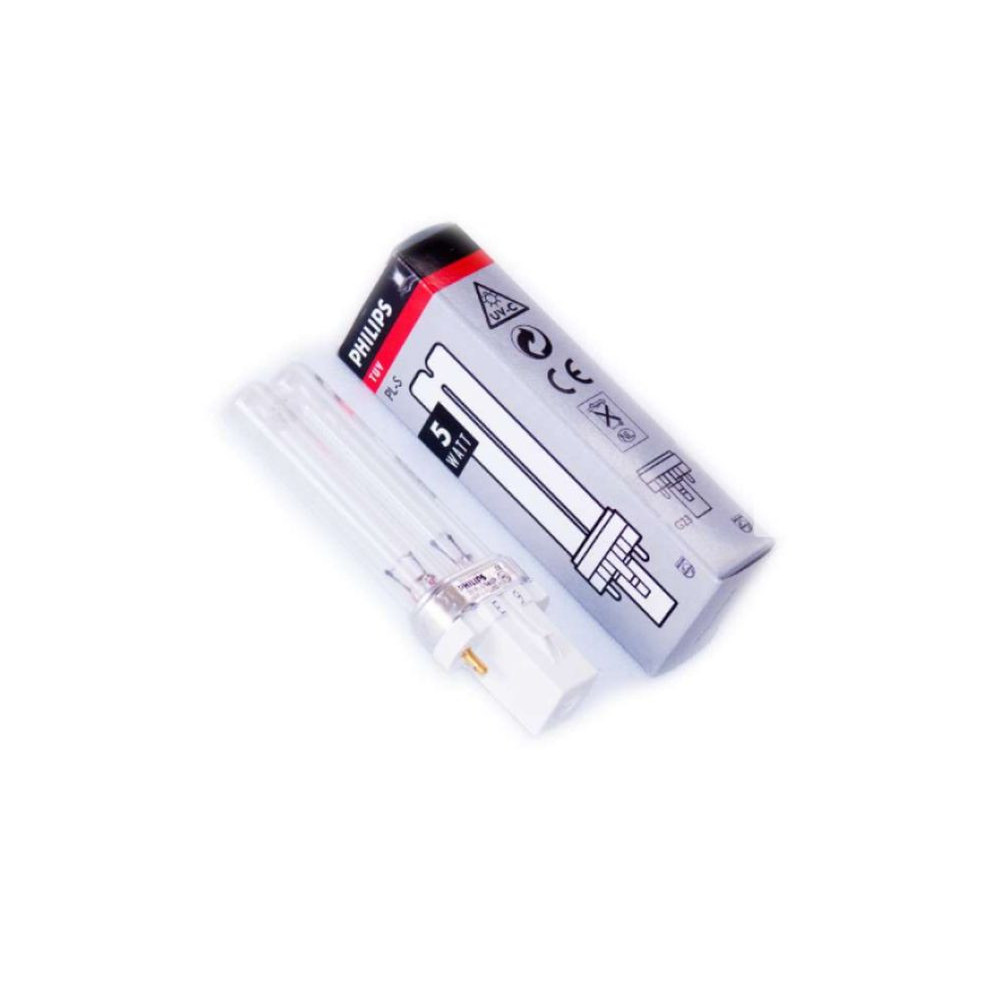 Univerzální kvalitní UVC zářivka 5W Philips pro UV-C lampy Tetra, Pontec, Aqua Szut, Aqua El, OASE, Atman, Heissner (vybrané typy) a další odstraňovače řas, sterilizéry, jezírkové UV lampy a akvarijní UV lampy. Germicidní záření shlukuje řasy do větších celků, které pak dokáže zachytit filtr. Jako sterilizér pracují při velmi nízkém průtoku vody.