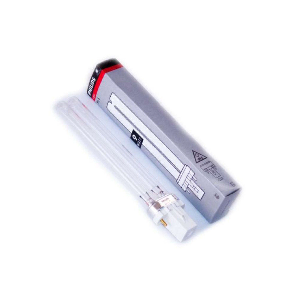 Univerzální vysoce kvalitní UV zářivka 9 W Philips je vhodná pro UV-C lampy Atman, Aqua Szut, Tetra, Pontec, Velda, OASE, Gardena, UV lampy Laguna (vybrané modely), Heissner (vybrané modely) a další odstraňovače řas, sterilizéry, jezírkové UV lampy a akvarijní UV lampy s paticí G23. Životnost zářivky max. 8000 hodin. Zářivka jezírkového odstraňovače řas - zářivka do UV lampy. Značkové univerzální náhradní UV-C zářivky 9W do sterilizérů a eliminátorů řas jsou spolehlivé výkonné.