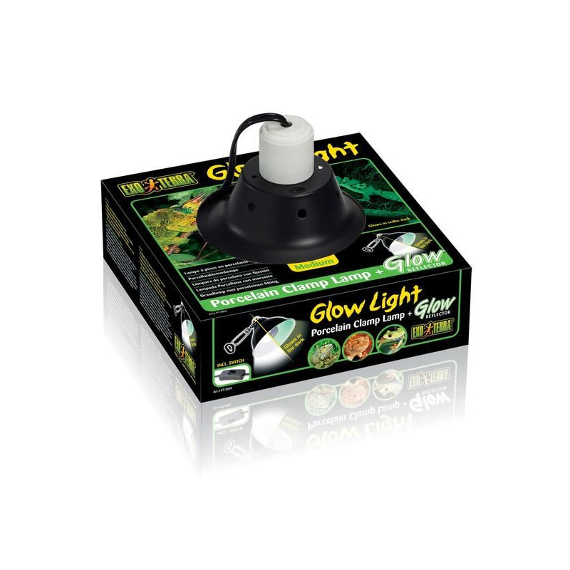 Exo Terra Glow Light střední je univerzální plechové terarijní osvětlení. Světlo je vyrobeno z odolných materiálů, včetně kovového reflektoru a tepelně odolné keramické objímky, která zajišťuje bezpečné a dlouhodobé používání. Svítidlo je vybaveno odpruženou otočnou svorkou, která umožňuje snadné a stabilní připevnění na různé části terária.