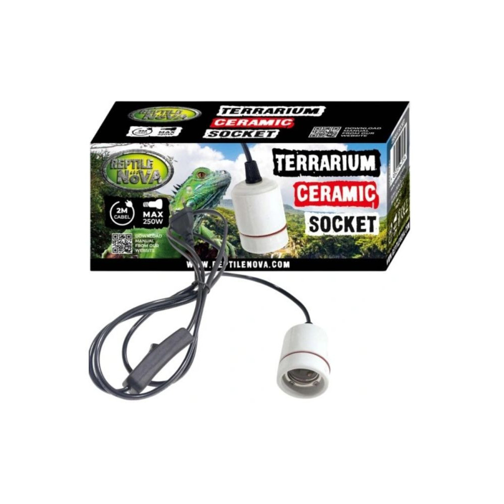 Keramická objímka REPTILE NOVA na žárovku do 250W je vybavená závitem E27 a kabelem s vypínačem. Ceramic Sicket se používá v teráriích, kde je potřeba vytápět prostor pro plazy či jiná terarijní zvířata. Keramický materiál je známý svou schopností odolávat vysokým teplotám, což je důležité při vytváření teplých prostředí uvnitř terária.