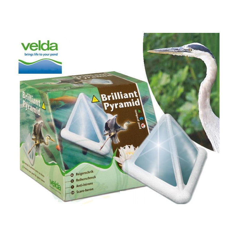 Velda reflexní plovoucí pyramida Brilliant Pyramid je bezpečné a šetrné řešení k odhánění ptačích predátorů. Používání odrazu světla je neškodné pro ptáky i pro životní prostředí.