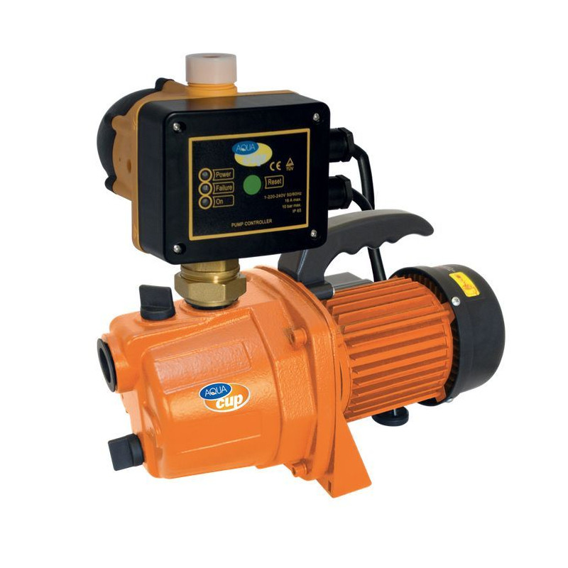 Odstředivé, závlahové čerpadlo AQUACUP HYDROCONTROL ECOJET 600-1 s hydrostatatem se zapínacím tlakem 2,2 baru. Hydrostat chrání čerpadlo proti běhu nasucho, udržuje požadovaný tlakový režim - tj. zařízení trvale pracuje v nejvyšším pracovním bodě.