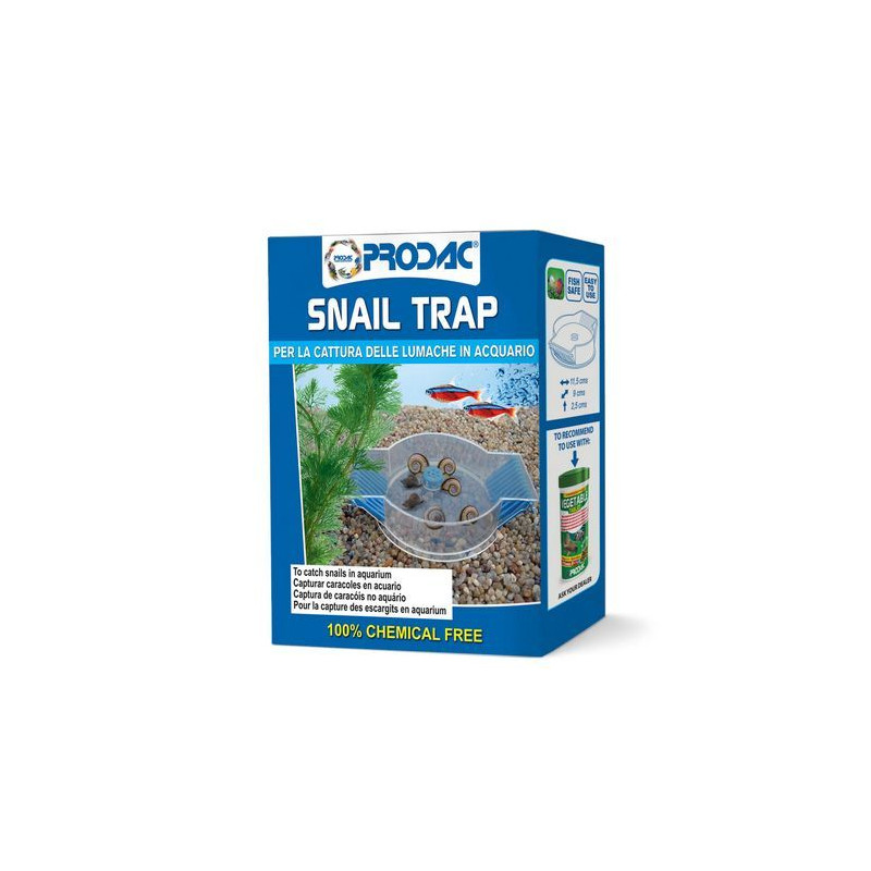 Prodac Snail trap je past na šneky v akváriu, která je vyrobená z průhledného plastu a určená k odstranění přemnožených šneků a slimáků z akvária. Jak odstranit šneky z akvária může být oříšek. Někteří šneci se dokáží osídlit i nádobu vnitřní akvarijní filtrace.