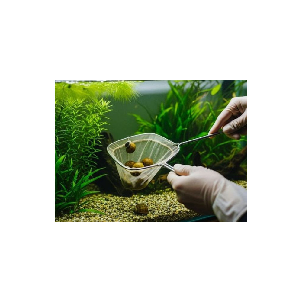 Spolehlivý přípravek na šneky v akváriu Prodac Snail Stop 30 ml vás zbaví vodních šneků, kteří škodí akvarijní flóře tím, že se krmí rostlinami v akváriu. Odstranění šneků a parazitů z akvária řeší právě přípravek Nutron Snail Stop 30ml. Aplikace likvidátora šneků má velmi uspokojivé výsledky, protože ani z vajíček šneků ukrytých ve filtru či akvarijním štěrku se již žádný nevylíhne. Přípravek proti šnekům v akváriu Nutron Snail Stop je pro ryby neškodný.